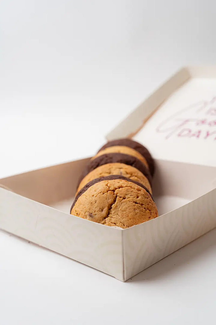 Double the flavor, double the joy!Our Mixed Cookies Box brings together the best of both worlds — 3 pieces of our Classic Chocolate Chip Cookies and 3 pieces of our Double Chocolate Cookies, each stuf...